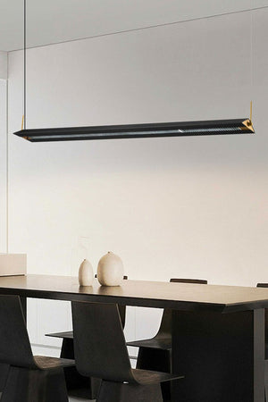Lámpara Colgante de aluminio con LED a 30W, Acabados en color negro y madera. Esta elagante lampara lineal es adecuada para barras, isla de cocina, estudio o biblioteca, recepciones. No es solo una lámpara, sino también una obra de arte.