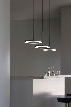 Lampara Colgante de aluminio con LED de 12W, Acabados en color negro. Brinda calidez y sofisticacion a tus espacios usando Lumina de manera individual o grupal.Ideal para comedores, barras, dormitorios, recepciones.